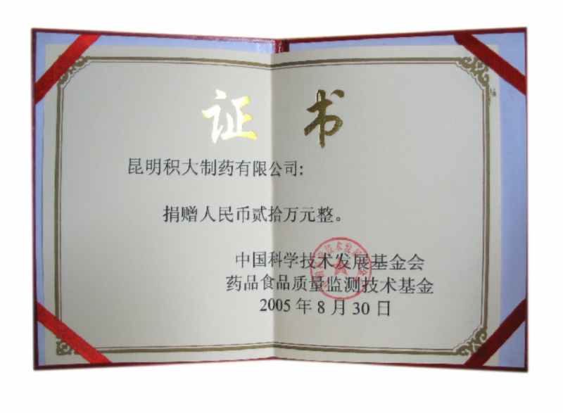 2005年8月30日,向中國(guó)科學(xué)技術(shù)發(fā)展基金會(huì)食品藥品質(zhì)量監(jiān)測(cè)技術(shù)基金捐贈(zèng)20萬(wàn)元。